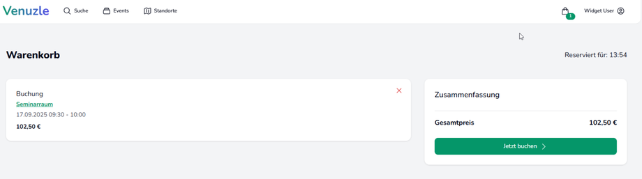 Achtung: Bitte beachten Sie, dass Buchungen, je nach Anbieter-Vorgaben, nur für eine bestimmte Zeit im Warenkorb gespeichert werden. Die verbleibende Zeit ist rechts oben sichtbar ("Reserviert für: " ). Nach Ablauf dieser Zeit werden alle Buchungen automatisch aus dem Warenkorb gelöscht.
