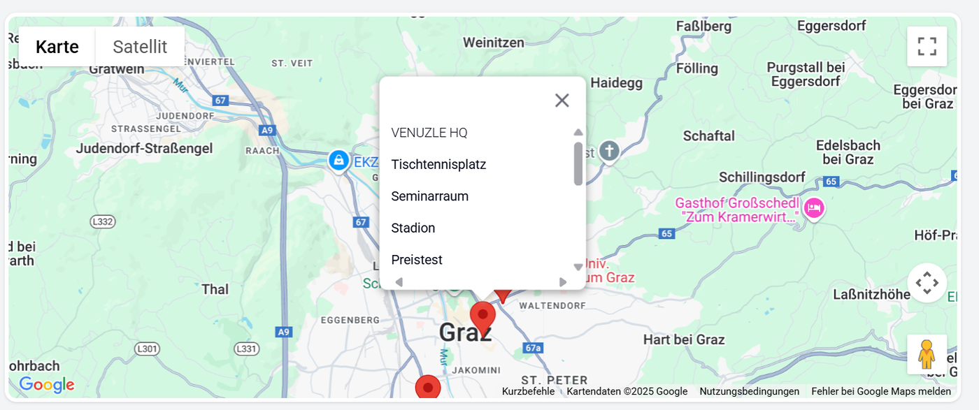 Sie können einzelne Pins anklicken und direkt Ihre gewünschte Sportstätte auswählen: