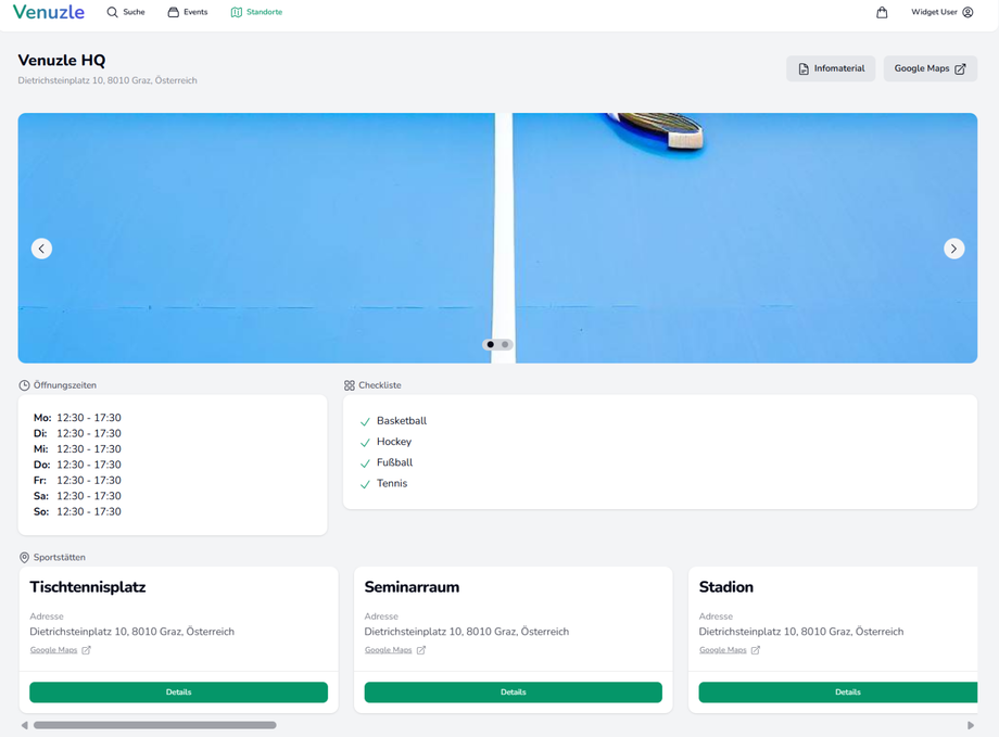 Auf dieser Seite finden Sie alle Details zum Standort sowie die einzelnen Sportstätten des Standortes.