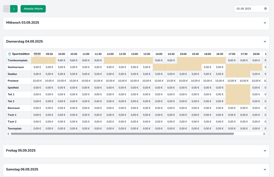 Sie können hier mit einen Klick auf den gewünschten Zeitslot eine Buchung starten.