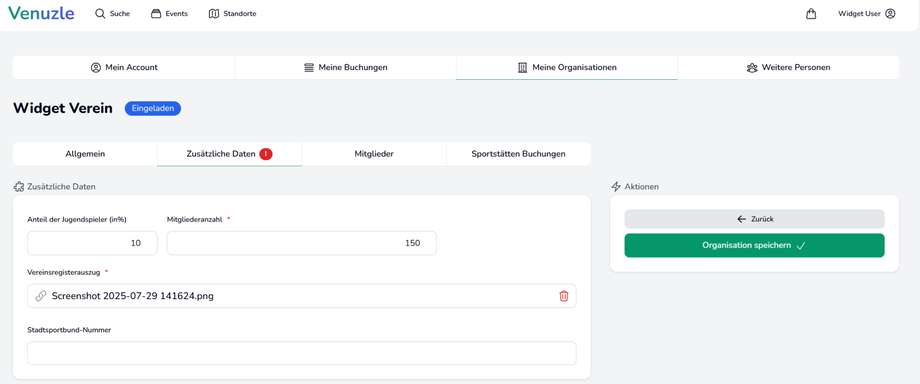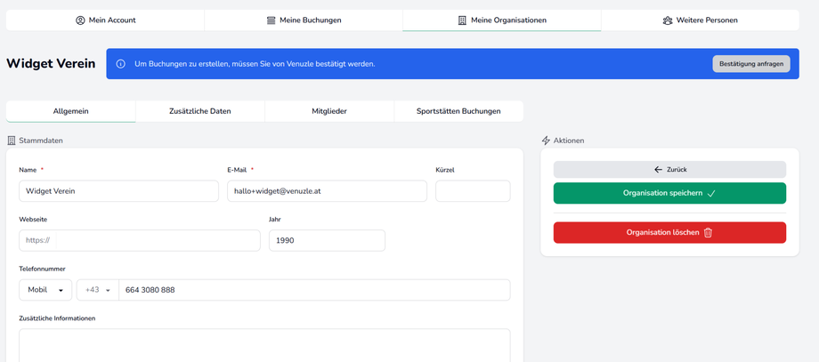 Nach erfolgreicher Eingabe der Vereinsdaten ist es bei manchen Anbietern (vor allem in der öffentlichen Verwaltung) notwendig eine Bestätigung zu beantragen.